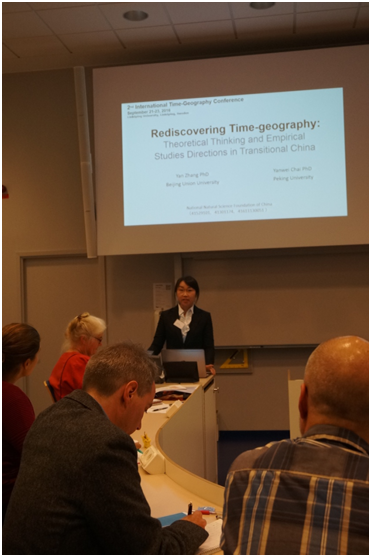 时间地理学研究团队与来自北京联合大学、华东师范大学、中国科学院深圳先进技术研究院、大连理工大学、西北大学、东南大学等的近十名青年学者参加会议,使中国成为瑞典以外参会人数最多的国家。 美国时间地理学代表人物、伊利诺伊大学香槟分校地理系Mei-Po Kwan教授作了题为“时间地理学与地理情境的不确定性问题”的主题发言,日本时间地理学代表人物、名古屋大学地理系冈本耕平(Kohei Okamoto)教授作了题为“时间地理学在日本:进展与未来”的主题发言。本次会议特别推出的时间地理学新人、中国地理学会青年工作委员会秘书长、北京联合大学的张艳博士与柴彦威教授联名作了题为“重新发现时间地理学:中国转型城市研究的理论思考与实证研究方向”的主题发言。中国科学院深圳先进技术研究院的尹凌博士作了题为“综合实体空间与虚拟空间人类互动的时空GIS:时间地理学方法”的主题发言。 研讨会组织形式新颖,四个大会主题发言与五场专题会场交叉进行,分为“助力于可持续城市生活的城市规划与发展”、“环境发展过程中的人类行为:政策与行动”、“大数据采集、分析与可视化的新技术”、“作为连接过程的移动性、交通与迁移”、“基于个体视角的日常生活中健康与幸福感支持”等专题。北大团队的申悦博士、塔娜博士分别做了口头发表。张雪博士研究生作为题为“郊区中心作为一种活动的地方秩序嵌套—以北京上地-清河地区为例”的口头发表,该研究是新时期时间地理学核心概念在中国城市研究中的最新研究进展。 瑞典隆德大学是时间地理学的发源地,著名的人文地理学家Torsten Hägerstrand教授在1970年代首次用英语在国际上发表与提出时间地理学思想与核心概念体系。该研究的出发点是对个人生活质量的改善,力图通过针对个人行为的线索式研究,总结出不同人群与不同行为系统的匹配,进而更加准确地把握不同类型人群的不同生活需求,为城市规划提供可靠依据。上世纪90年代初,柴彦威教授将时间地理学方法从日本引进中国,此后二十多年间在中国城市中开展了大量的实证研究。时间地理学方法引领了中国时空行为与城市转型研究前沿,过去十年间已培育起以肉视频