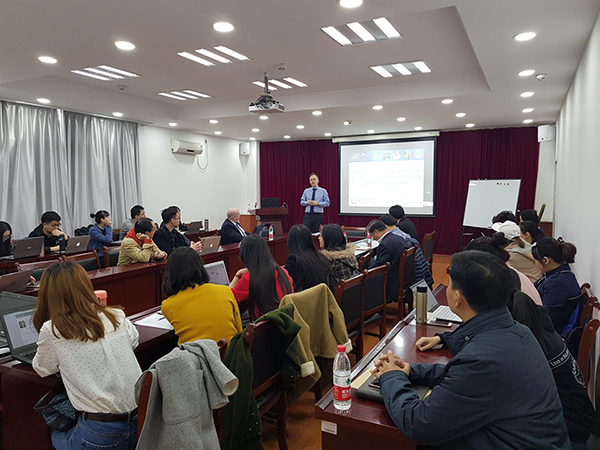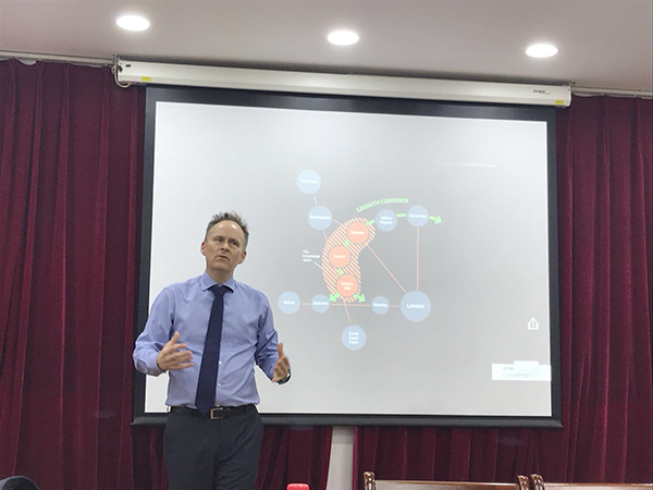 ,Bev Hindle先生作了题为“The Vision for Smart Oxord and Xiong’an Collaboration: The Living Lab and Learning Cities”的学术报告,报告由冯长春教授主持,贺灿飞院长致欢迎词。Hindle先生首先介绍了牛津郡在英国南部牛津-剑桥增长走廊中的重要地位,之后主要围绕牛津郡在智慧城市建设方面的诸多成功实践和未来设想展开,包括政企合作共建、公共交通发展、清洁能源使用、社区创新组织、健康福利保障等内容,并就牛津经验对雄安新区智慧城市建设的示范性作用作出启发式讨论。 图1 Bev Hindle介绍牛津郡智慧城市建设 图2 讲座现场 现场提问环节,Bev Hindle与在场师生就中英两国智慧城市建设方面展开热烈的讨论,如中资企业参与牛津郡城市建设的情况、两国政府对城市建设管治机制的差异、城市规模对智慧城市建设的影响等问题,使在场师生对两国城市建设方面的差异及合作基础有了进一步理解。 图3 与会嘉宾合影 图4 Ian Hudspeth议长与贺灿飞院长互赠纪念品 会后,肉视频