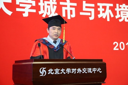 2018届学生毕业典礼在英杰交流中心阳光大厅成功举行。学院院长贺灿飞老师、党委书记刘耕年老师、院友代表黄友琴以及学院其他领导和导师、班主任、任课教师、行政教辅代表出席了典礼活动,参加典礼的还有2018届200多名本、硕、博毕业生及部分毕业生家长。典礼由学院副院长金鑫老师主持。 典礼现场 副院长金鑫老师主持毕业典礼 典礼开始前,毕业生们纷纷在“城因有你,青春不负”毕业纪念签名墙上签名、合影留念,一笔一划写下的是收获的喜悦,一光一影留住的是离别的不舍。同样带给大家惊喜的还有学院为全体毕业生精心制作的纪念册。翻开册子,一张张笑脸,一幅幅画面,描绘的是圈地为方、绘纸成图的几载青春,诉说的是以诚相待、携手并肩的同窗情谊。 签名墙合影 十四时二十分,典礼在雄壮的国歌中正式开始。院长贺灿飞老师首先致辞。他以未名湖畔的果实为喻,祝贺大家经过辛勤耕耘顺利毕业。他强调了批判性思维、综合性思维、空间思维的重要性,希望大家能够关心自然和人类社会的共同命运,深入开展对资源-环境-生态-城市的综合系统分析,寻找人类之间休戚与共的生存模式以及人类与自然和谐相处的方案。他鼓励大家要特别领会总书记的殷切期望,既要做追梦者,更要做圆梦人,要求真学问,练真本领,努力成为知行合一的实干家,做推动我国生态文明建设的实干家。 院长贺灿飞老师致辞 随后,88级院友、美国纽约州立奥尔巴尼大学地理与规划系教授、奥尔巴尼大学中国文化与经济孔子学院院长,奥尔巴尼大学社会与人口研究中心研究员黄友琴分享了她在北大学习的经历与体会。她寄语师弟师妹们要珍惜宝贵的同学情、师生情;劝勉即大家要有使命感与正义感,要学会淡定从容、荣辱不惊地运用自己的知识和技能报效祖国、改变世界。致辞之后,党委书记刘耕年代表学院向黄友琴院友赠送了她当年的本科毕业论文副本和学院今年的毕业文化衫留做纪念。 院友代表黄友琴教授致辞 党委书记刘耕年老师向黄友琴赠送纪念品 2014级本科地生班班主任蒙吉军老师代表学院教师发言。蒙老师回忆了与同学们一起在全国各地实习的足迹,也祝贺同学们顺利完成学业。面对新的征程,蒙老师希望同学们在未来的学习工作中要懂得担当、懂得合作、懂得创新,祝福同学们事业有成、生活幸福。 教师代表蒙吉军老师致辞 紧接着,2014级本科毕业生代表张晓华发言,她表达了对学院老师、父母家人和同学们的感谢,并希望北大所赋予的独立的思想与自由的精神,能够让同学们在今后的成长道路上,真正关注生活和生命的本质。2015级硕士研究生代表上官淮亮回顾了自己在北大、在城环的三年时光。即将走上选调岗位的他,也结合自己的职业规划,分享了地理人“为天地立心,为生民立命”的天然使命感和责任感。 本科毕业生代表张晓华发言 研究生代表上官淮亮发言 满含深情的语言道不尽喜悦与不舍,毕业生特别节目《青春大概》将大家的情绪推向高潮。“在花落时结果,期望很多,青春大概都这样过。也许还有遗憾,甚至很多,但是相信懂你没有白活!”,相信这是所以毕业生们的心声,也许不免有遗憾,但是所经所历都是城环人的最好回忆。 毕业生特别节目 今年毕业典礼,学院还增设了2018年肉视频