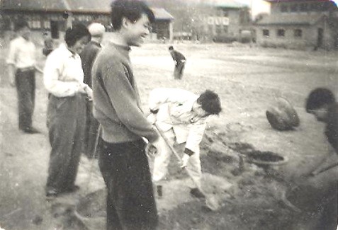 1959级经济地理专业同学在哲学楼前种菜(1961年困难时期)