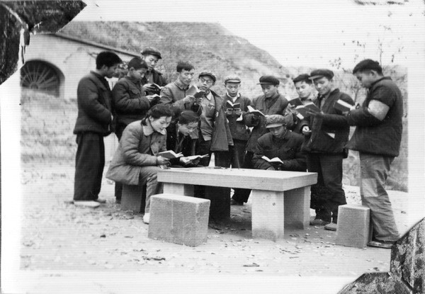 1961级同学在延安杨家岭学习毛主席发表的《帝国主义与一切反动派都是纸老虎》谈话(1966年10月20日)