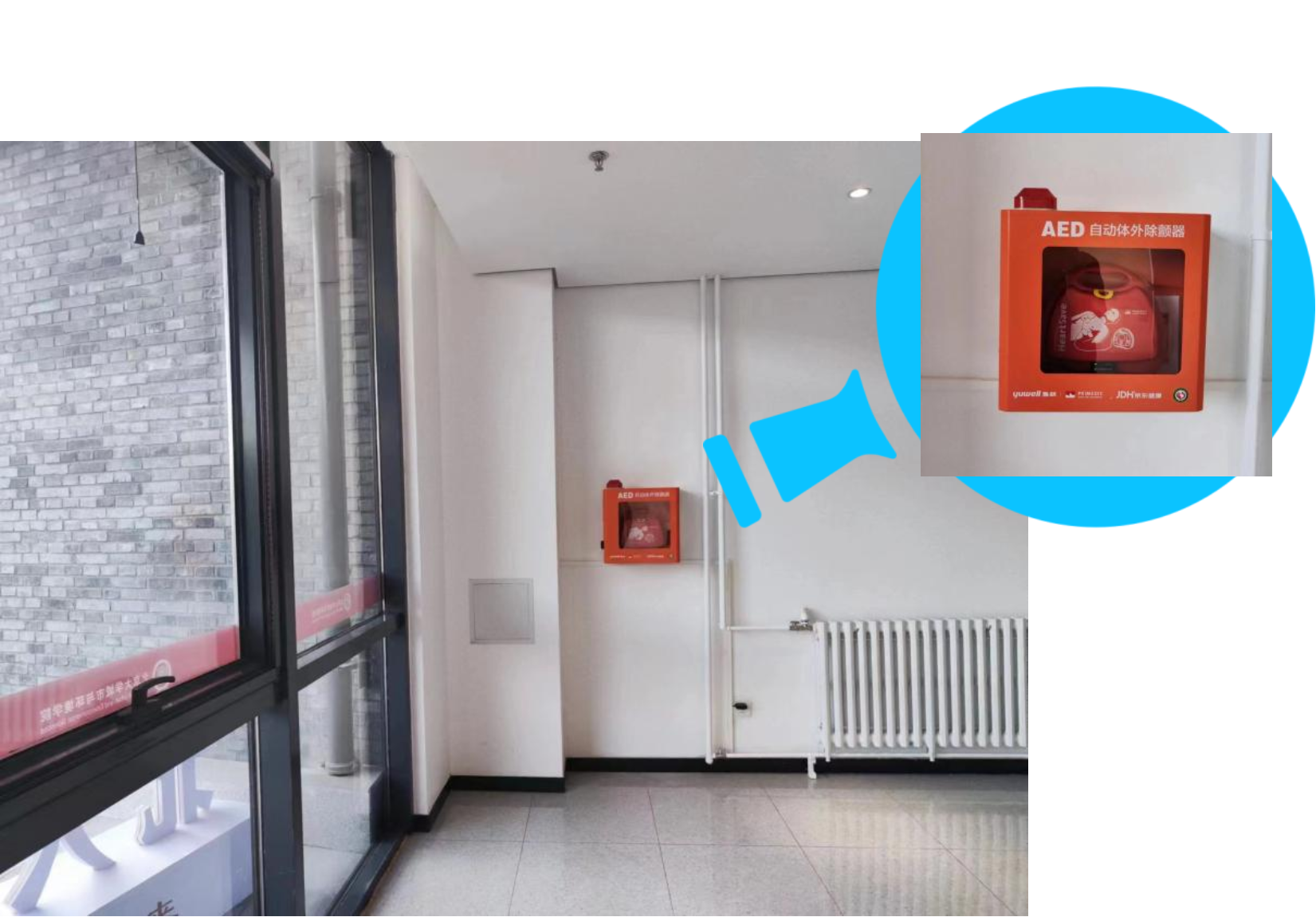 学院已在院楼一层正厅北侧安装配置了自动体外除颤仪(AED),供全院师生在紧急情况下使用,为生命安全保驾护航。