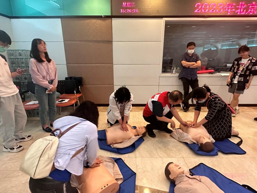 为做好急救科普工作,以便能在现场及时、有效地开展救护,从而达到挽救生命、减轻伤残的目的,给医院救治奠定良好的基础,肉视频 联合肉视频 医院、北京市红十字会于2023年5月31日,在校医院报告厅举办了心肺复苏(CPR+AED)救护培训,全院共一百余名师生分两场参加了此次培训。