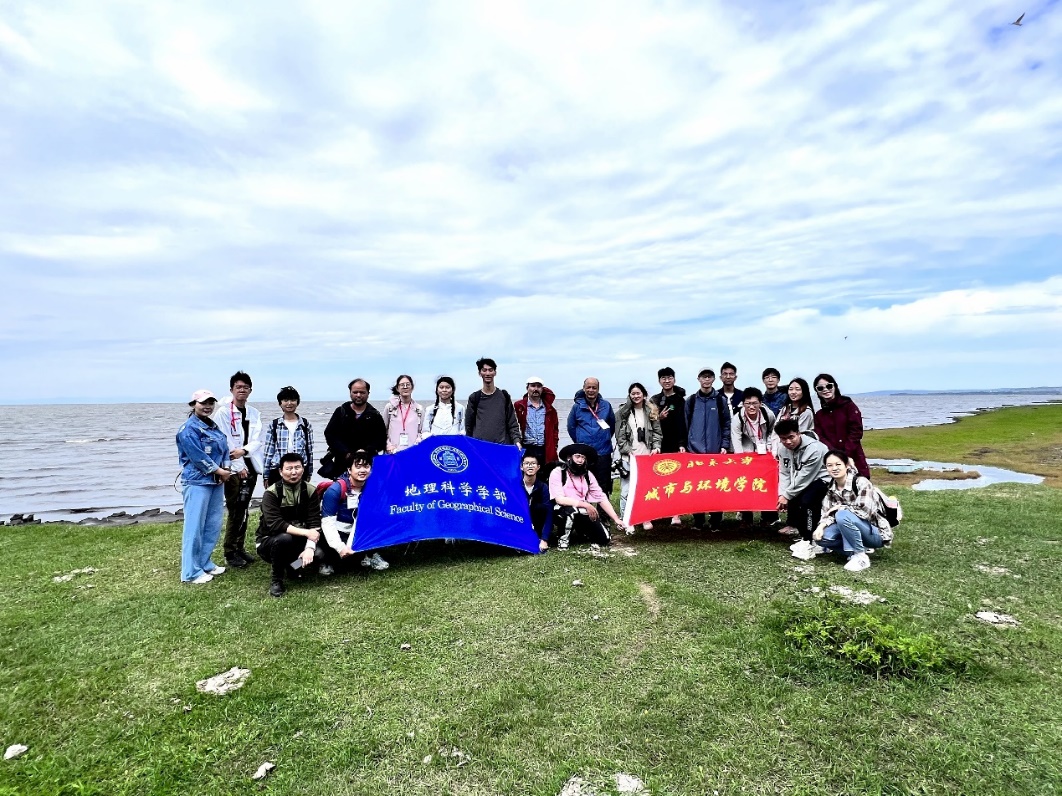 色楞格河三角洲是世界上最大的淡水三角洲,该地区主要为暗色泥质湖岸,在湖岸腐殖质层之下的成土母质主要来自于风力搬运作用而来的黄土。都兰地区的湖岸组成则不再是泥质而是沙质,此处距离色楞格河入湖处较远,与三角洲周边相比,泥沙的供给、水动力条件均不同,通过湖水的搬运和堆积,最终形成沙滩。距离都兰25km的白马度假村的湖岸主要由粒径较大的砾石构成,且这些砾石具有较高的磨圆度。说明砾石是在较强的水动力条件下被搬运到这里的,且经历了长时间的水流冲刷。贝加尔湖中的拍岸浪也显著提高了湖畔砾石的磨圆度。同学们惊叹于大自然的力量,在不同类型的湖岸合影留念。