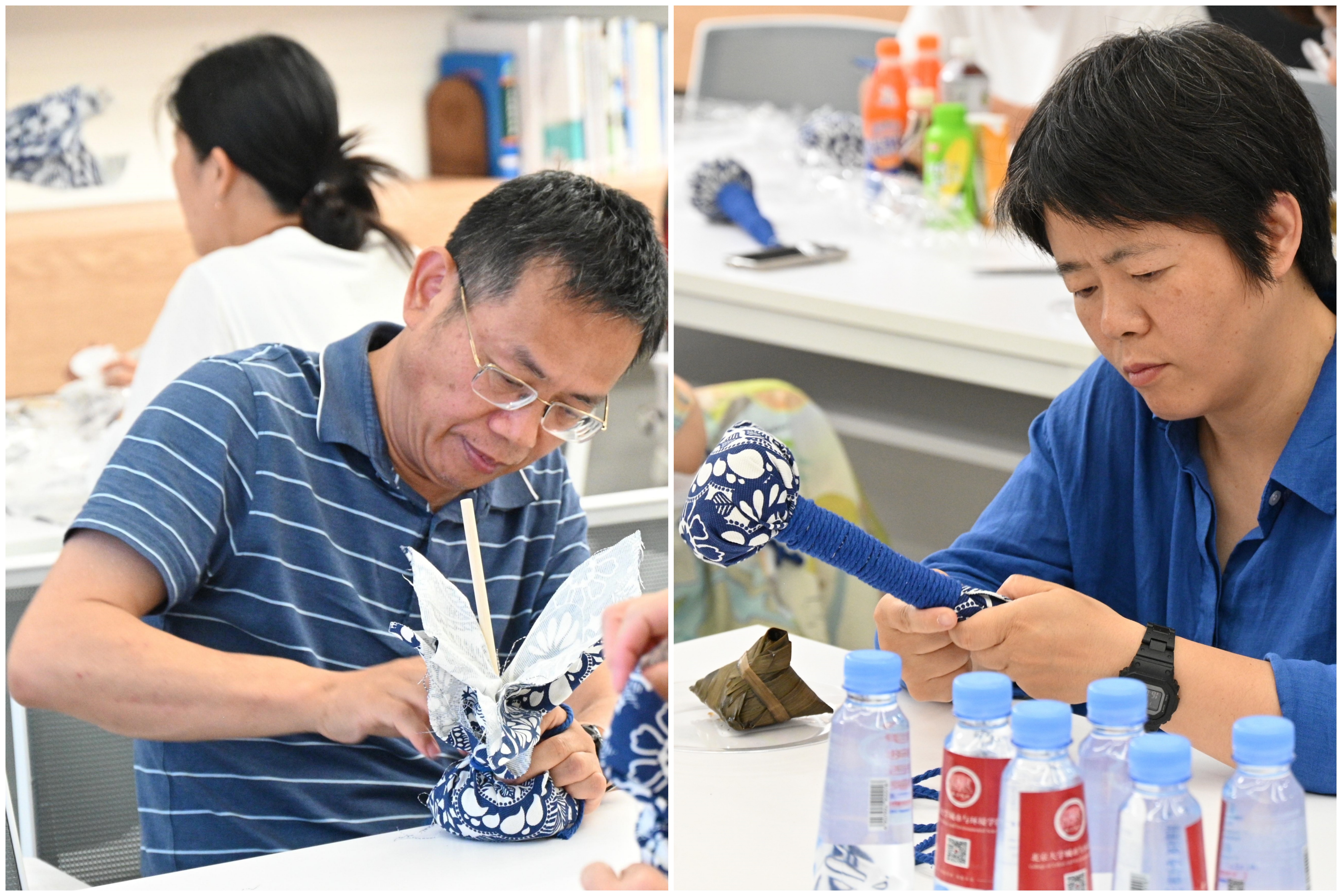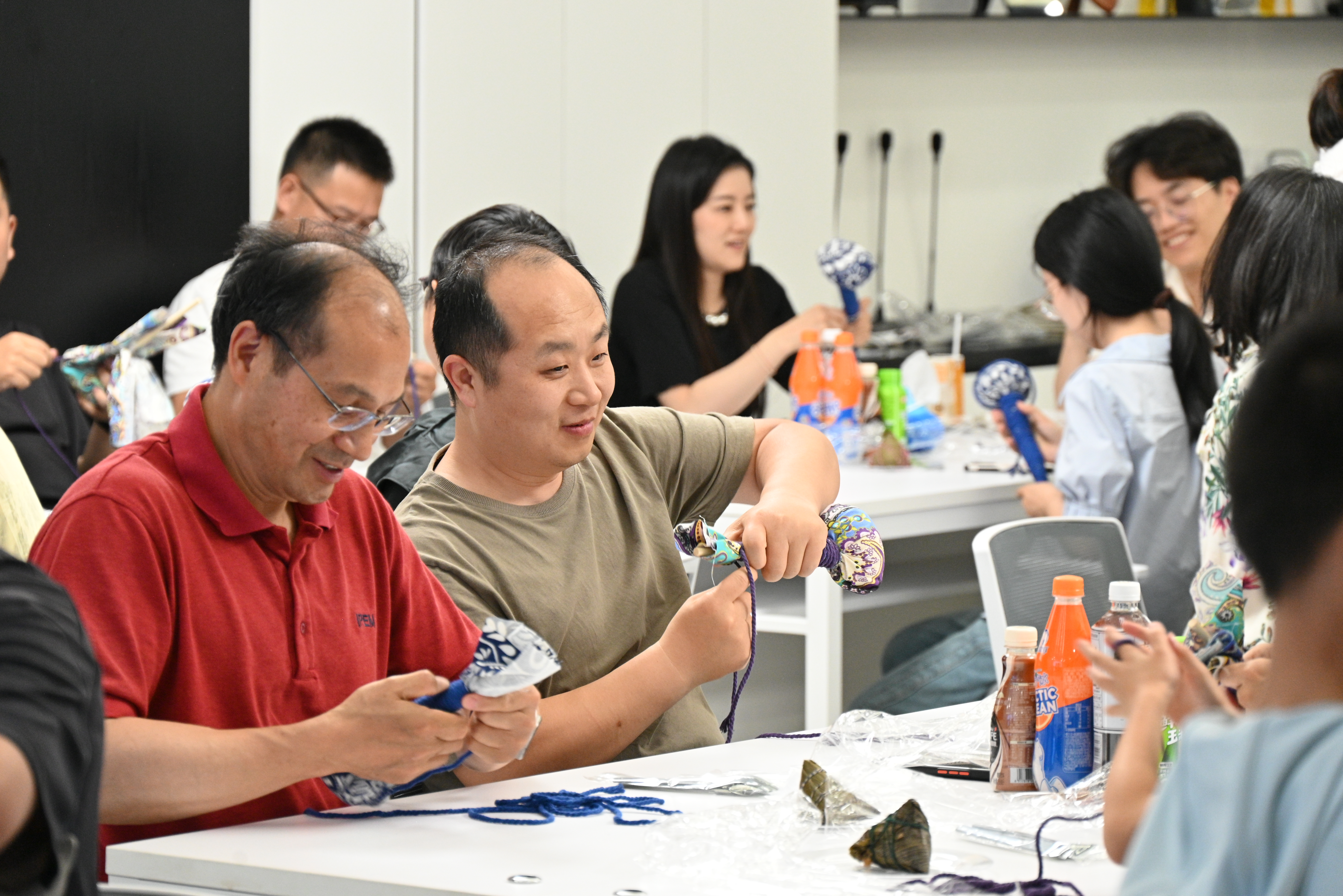 在艾草香与粽香交织的温馨氛围中,老师们欢声笑语,合影留念,互相展示着自己的作品,也欣赏着对方的作品。这一刻,大家不仅感受到了传统文化的魅力,更在彼此的陪伴和交流中,收获了欢乐与温暖,形成了一幅其乐融融的美好画面。