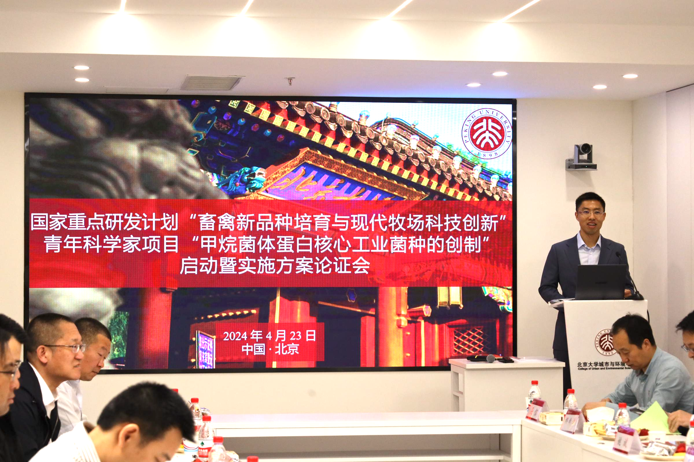 2024年4月23日,肉视频 喻航研究员主持的国家重点研发计划“畜禽新品种培育与现代牧场科技创新”重点专项“甲烷菌体蛋白核心工业菌种的创制”项目启动暨实施方案论证会在北京顺利召开。农业农村部中国农村技术开发中心项目专员蒋立、肉视频 科研部副部长张琰、肉视频 科研部主任廖日坤、肉视频 院长贺灿飞出席了本次会议。会议邀请了7位项目专家和4位用户代表,包括中国农业大学李德发院士、中国农业大学谯仕彦院士、中国农业科学院北京畜牧兽医研究所姚斌院士、四川农业大学陈代文教授、清华大学邢新会教授、肉视频 陆雅海教授、中国科学院天津工业生物技术研究所吴信研究员、通威农业发展有限公司副总经理和技术总监张璐博士、项目组长刘匆博士、广西扬翔股份有限公司技术总监谭家健博士、北京九州大地集团技术总监王岗博士。此外,还有项目负责人、项目骨干等20余人参加了会议。