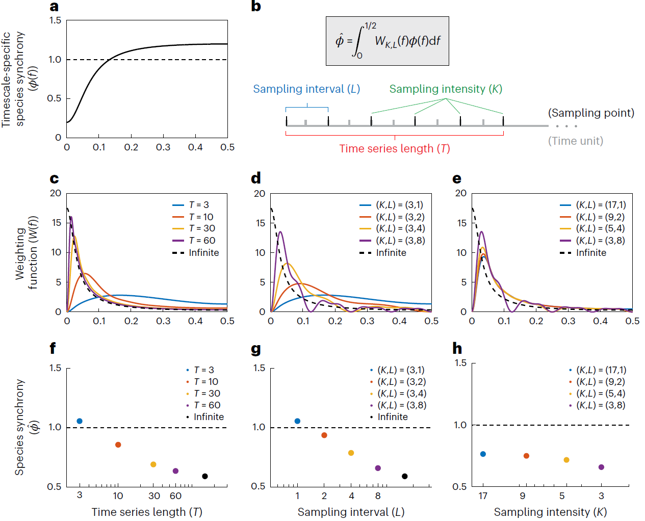 图1. 时间序列长度对物种同步性的影响