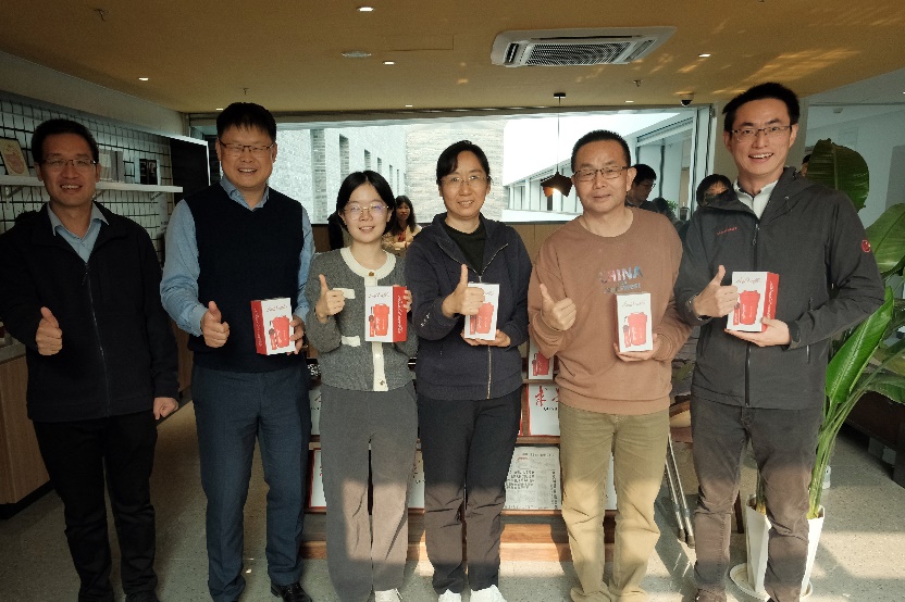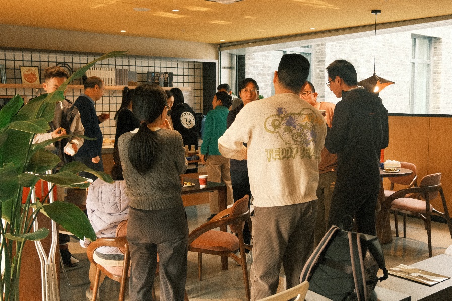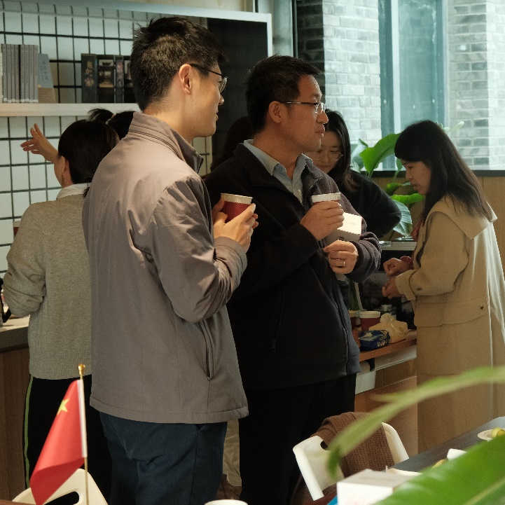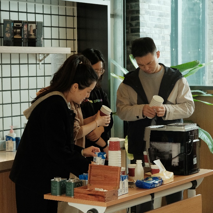 四楼空间以咖啡会友交流为主,学院老师携带着不同风味的咖啡豆前来,研磨调配出美味咖啡饮品。大家围坐一起,品尝着咖啡、水果和小点心,分享着心情,交流着学术研究进展。在品味咖啡活动中,还举行了教工羽毛球队的颁奖仪式,党委书记彭建、副院长李本纲和王志恒分别为队员颁奖,感谢队员们在北大教职工羽毛球锦标赛中的精彩表现和努力。空气中弥漫着咖啡的醇香,飘荡着欢声笑语,虽是清冷的冬日,大家却感到暖暖的幸福。