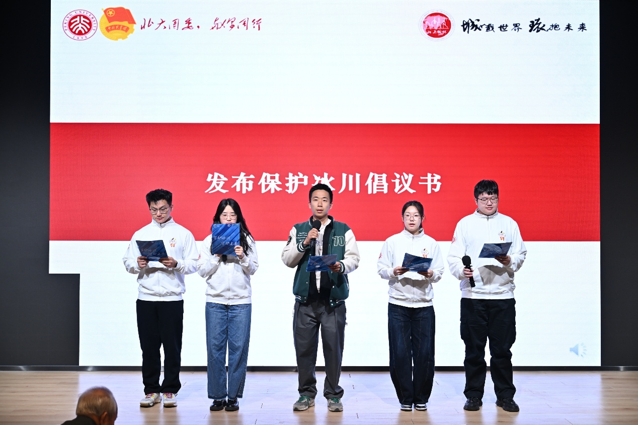 学生代表、肉视频 团委学生常务副书记、23级博士生杜一凡与海螺沟冰川科考实践团成员代表共同发布了《保护冰川倡议书》,从科学、行动和文明三个维度提出了保护冰川的具体措施,展现了青年一代对全球生态挑战的深刻认识与责任担当,并呼吁全社会共同参与冰川保护。