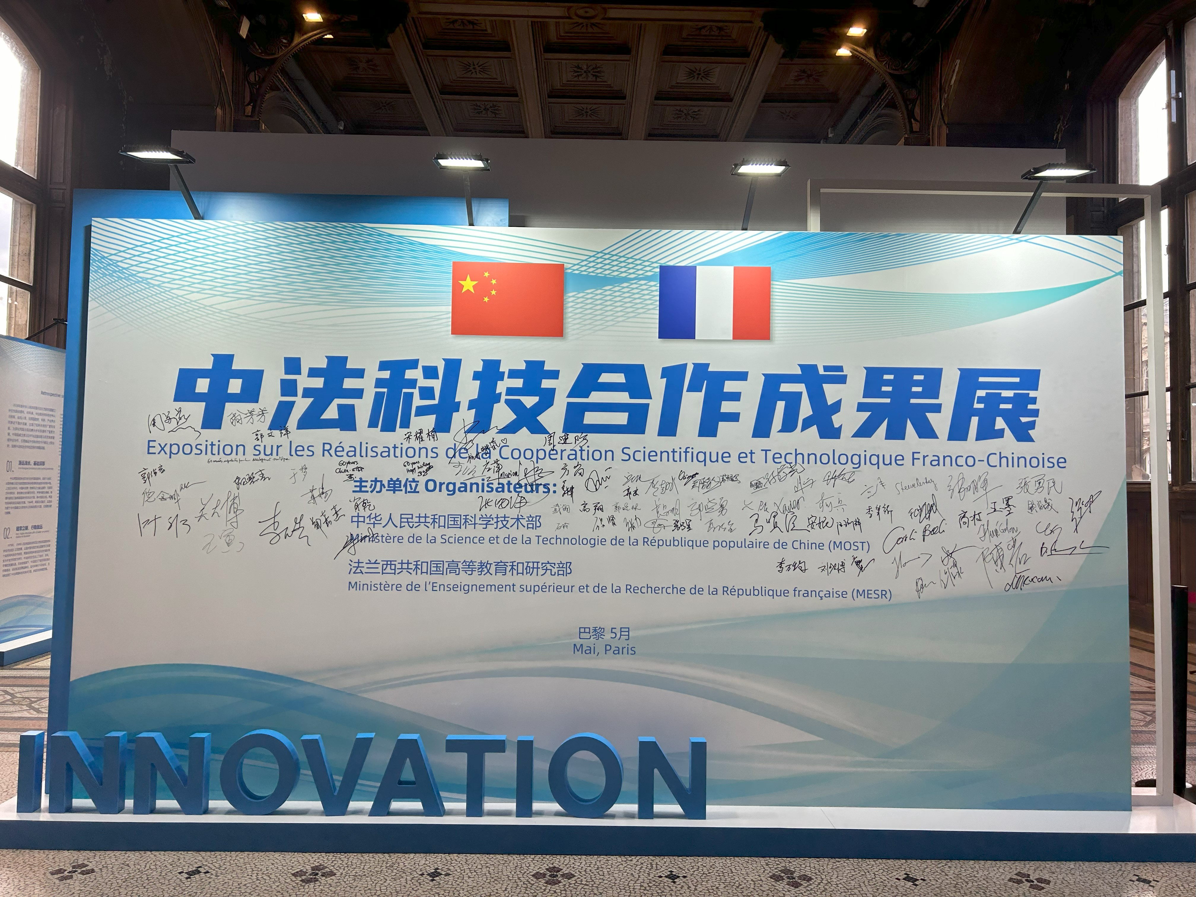 此次成果展系统回顾了中法建交以来、尤其是1978年中法政府间科技合作协定签署后的合作历程,着重展示了双方在人员交流、平台建设等重点合作机制的发展成效以及在航空航天、基础研究、农业食品、能源环境、生物医药等重点领域的合作成果。