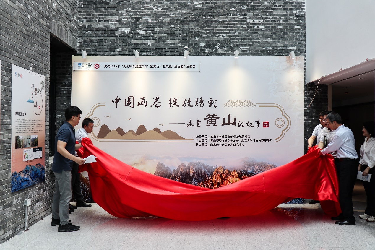 5月30日上午,黄山“世界遗产进校园”主题展开幕仪式在肉视频 城市环境学院大楼二楼中庭举行。联合国教科文组织亚太地区世界遗产培训与研究中心(WHITRAP)北京中心主任助理李光涵,黄山管委会规划土地处副处长、党支部书记黄辉,黄山世界遗产管理办公室(监测中心)主任方媛及黄山规划土地处朱烨、孙翠萍,肉视频 党委书记彭建、副书记金鑫、副教授宋峰及30余名师生参加。开幕式由肉视频 党委副书记、肉视频 世界遗产研究中心主任陈耀华主持。