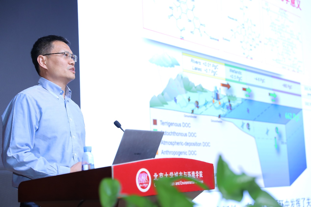 朱东强教授提出了溶解性黑碳的分子标志物示踪新方法,介绍了该方法环境地球化学效应,以此指示气候变暖的效应。程和发教授聚焦水体中兽药的光降解与光催化降解,讲解了光降解与光催化的原理,肯定了半导体光催化技术在加速兽药在水体中的降解的运用。李喜青研究员围绕“污水流行病学:从毒情评估到公共卫生监测”的主题,介绍了污水流行病学的发展历史,指出了污水流行病学在毒情评估、公共卫生监测方面运用的巨大潜力。袁文平教授关注了中国N2O的排放,对中国N2O的排放通量进行了核算,指出了中国N2O减排的巨大潜力。张尧研究员以《植物干旱生理响应的遥感探测》为主题,讲解了遥感技术在植物干旱生理响应检测中的运用,展示了遥感技术从光合胁迫、冠层含水量等多个方面观测植物的动态变化。刘刚教授以《社会经济代谢与资源环境管理》为主题做了报告,从金属循环、食物系统、建成环境三方面,详细阐述了社会经济与资源、产业与城市绿色循环低碳发展。朱晟君研究员关注“面对面交流与校企合作”的问题,基于北京市手机信令大数据的验证,指出“面对面交流促进了校企合作创新”。王长松研究员带来了《民国北京社会空间的生与死》的报告,从北京会馆的空间结构特征与北京殡葬空间的复杂现代化转型两方面,揭示了中国传统城市的转型过程。吴龙峰研究员从“城市蓝绿空间对心理健康的改善作用”的角度出发,以新冠疫情后期为例,展示了绿地对于人心理健康水平的非线性影响。林超学者任卓然就“外资企业、多维关联与中国区域产业演化路径”的问题,指出了全球性变革导致在华外资对中国产业影响的复杂变化,得到了中国区域产业以路径依赖式升级演化为主,外资企业技术与资本对本地产业演化的影响具有互补与强化效应等结论。林超学者王锴介绍了“陆地碳汇年际变化的驱动机制”,说明了温度和水分对于碳汇年际变化的影响,解释了过去60年全球陆地碳汇年际变化波动幅度的变化。