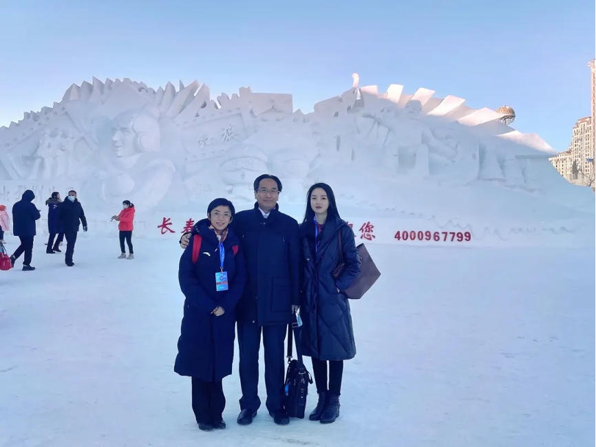 2020年与吴老师参加吉林省雪博会合影。左一为蒋依依师姐